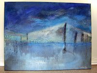 Blått: Et stort bilde i blandingsteknikk av et norsk